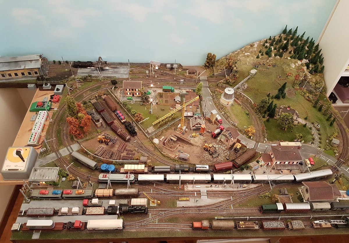 Gli ovali sono rimasti gli stessi, ho ampliato la zona deposito locomotive, stazione e scalo merci, ampliato la montagna, aggiunto il casello, la stazione e il cantiere edile e tanti altri particolari; tutti gli scambi erano manuali e li ho motorizzati, il controllo era e rimane analogico (per il digitale mi sto cimentando con la scala TT).