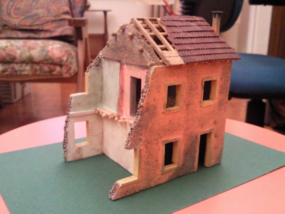 Mi interesserebbe molto capire come hai realizzato i muri della casa parzialmente abbattuta perché l'effetto è identico alla realtà.
