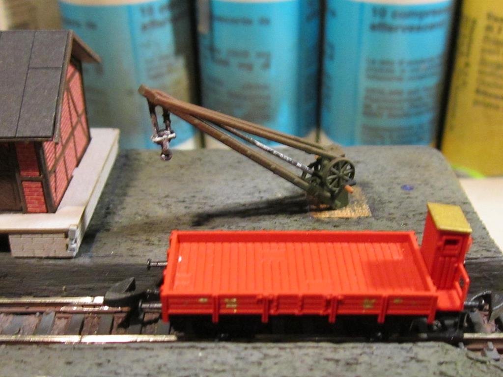 Per la gru, come sopra grazie alle dimensioni non è stato necessario costruire una base complessa dove alloggiarla . Ho solo simulato la lamiera mandorlata anti scivolo.