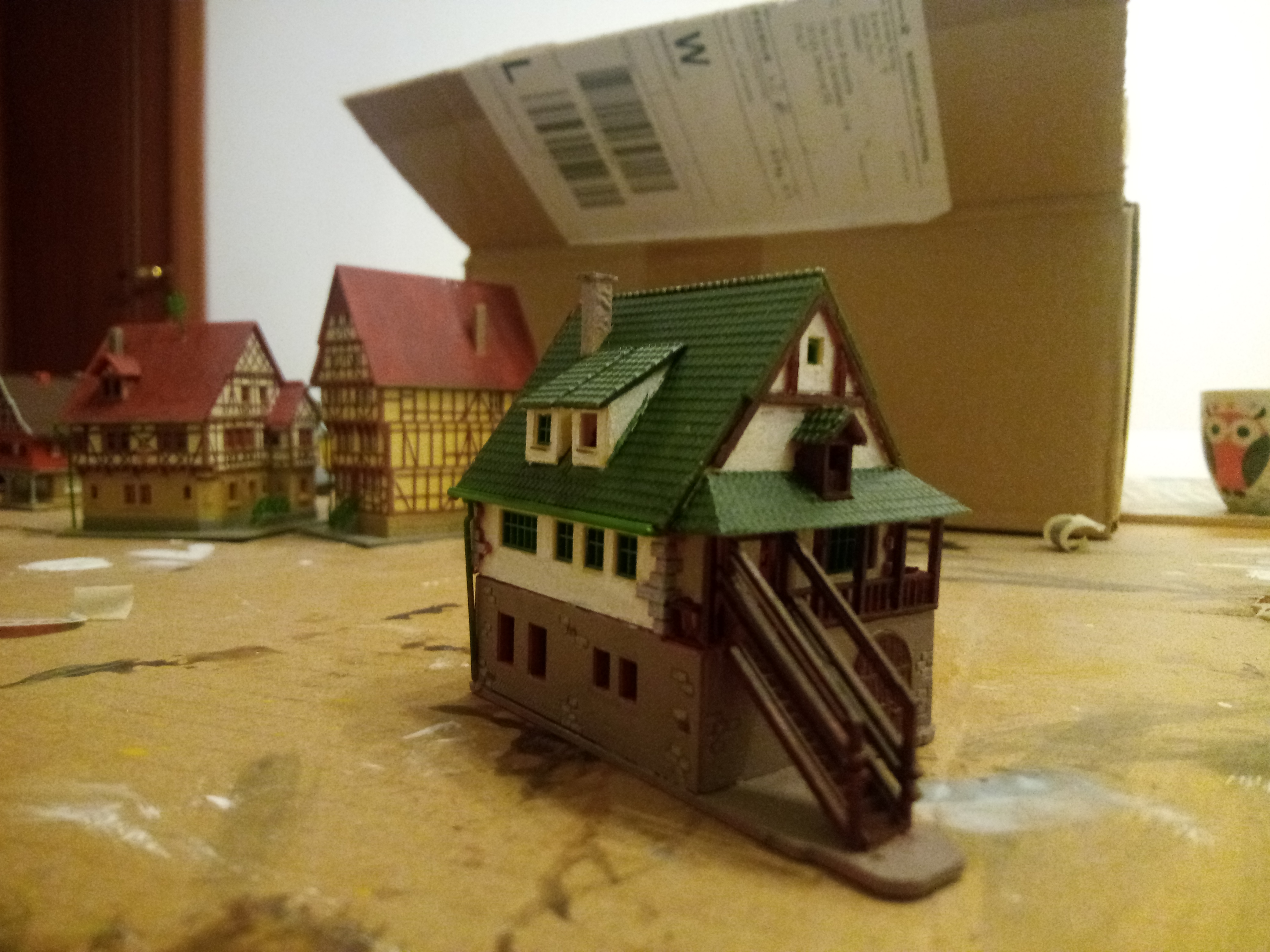 Perchè buttare? [204] Con le altezze sei molto vicino, tieni presente che il modello accostato alle tue casette ha l'ingresso sollevato di un paio di millimetri; un leggero aggiustamento per renderle più simili allo stile tedesco e poi basta non metterle accostate a quelle commerciali.....