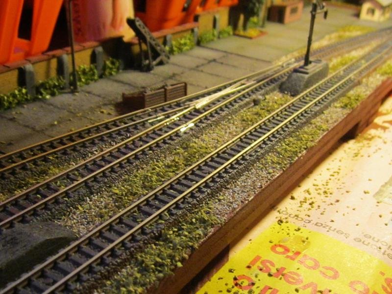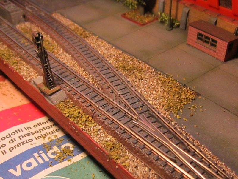 Messa un po di erba sulla massicciata del piazzale binari. Anche lei avrà bisogno di un ritocco colore per spegnere il verde intenso