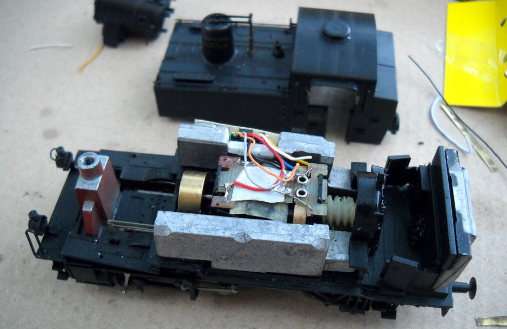 Ricollocazione della zavorra fresata e saldatura dei cavetti di alimentazione e cavetti motore dopo aver posizionato il decoder nella nicchia ricavata per fresatura.